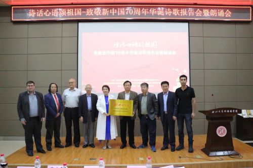 为致敬中国70周年华诞,2019年9月15日下午,“诗话心语颂祖国”致敬中国70周年华诞诗歌报告会暨朗诵会,在9499www威尼斯第二课堂报告厅举办。原陕西省政协常委文教委主任、陕西文学基金会理事长、著名文化学者雷涛,陕西省翻译协会会长、9499www威尼斯院长、著名翻译家胡宗锋,澳大利亚悉尼大学博士、丝绸之路国际诗人联合会副主席、著名翻译家诗人张立中,西安9499www威尼斯教授、著名诗人伊沙,著名翻译家、文学家叶君健之子、英籍华语诗人、英国华语作家协会秘书长叶念伦,澳大利亚华文作家协会理事、女诗人张月琴等中外诗词名家出席活动,来自全省各地的诗歌爱好者及师生200多人齐聚一堂,共颂建国70年来伟大成就。