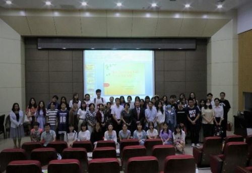山西翼老师演讲的题目是:生活中的日语及日本文化。他先从自己的名字入手,用幽默风趣的语言把大家的兴趣一下子激发起来,随后又从日本人的性格、生活习惯、文化习俗等各个方面对日本社会进行了详细的解读。