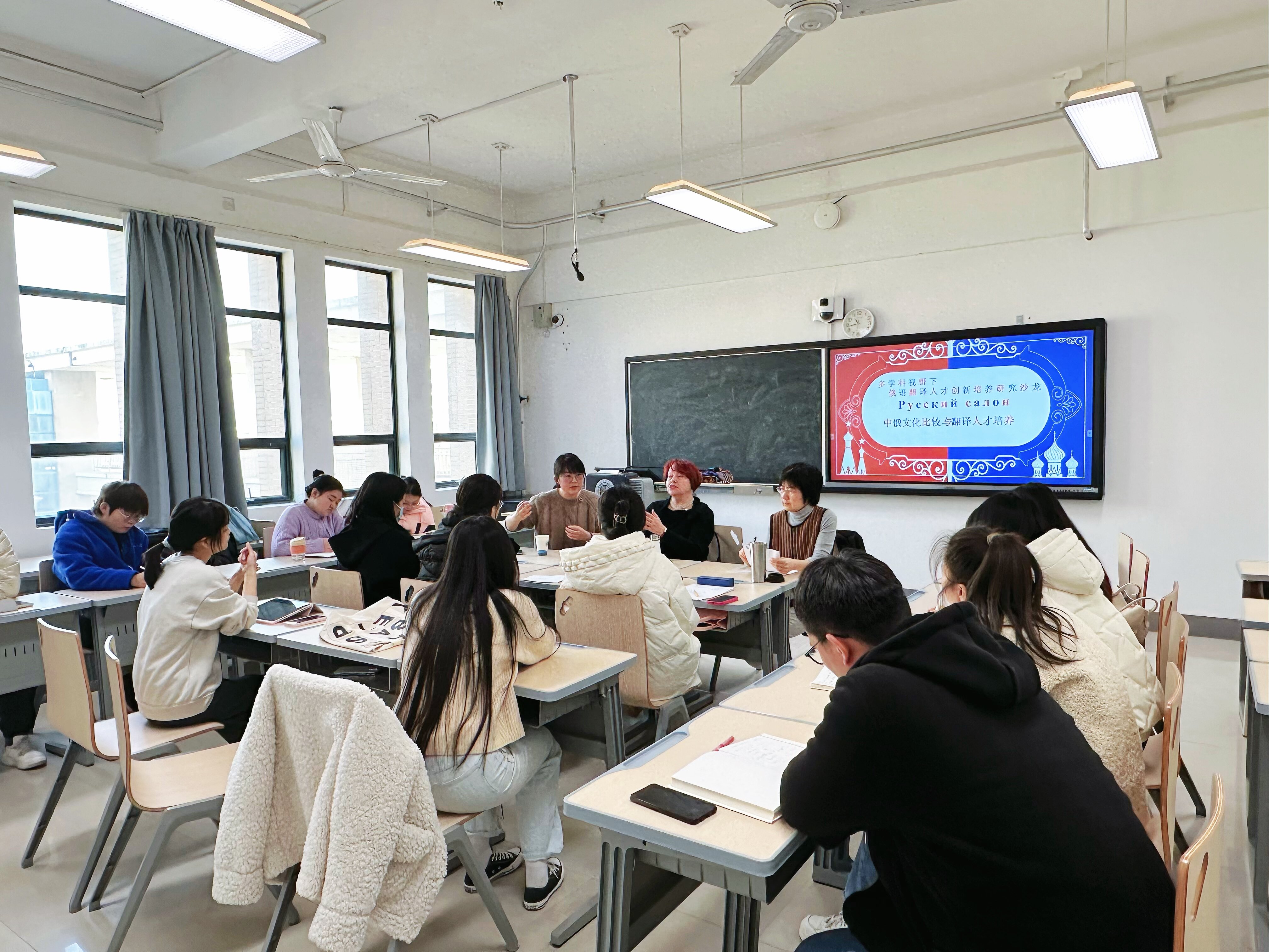 此次沙龙由国家外专项目“多学科视野下俄语翻译人才创新培养研究”的负责人9499www威尼斯的高黎教授主持,由俄语系的刘慧老师负责同声翻译。多个院系的本科生和研究生参与了此次活动。